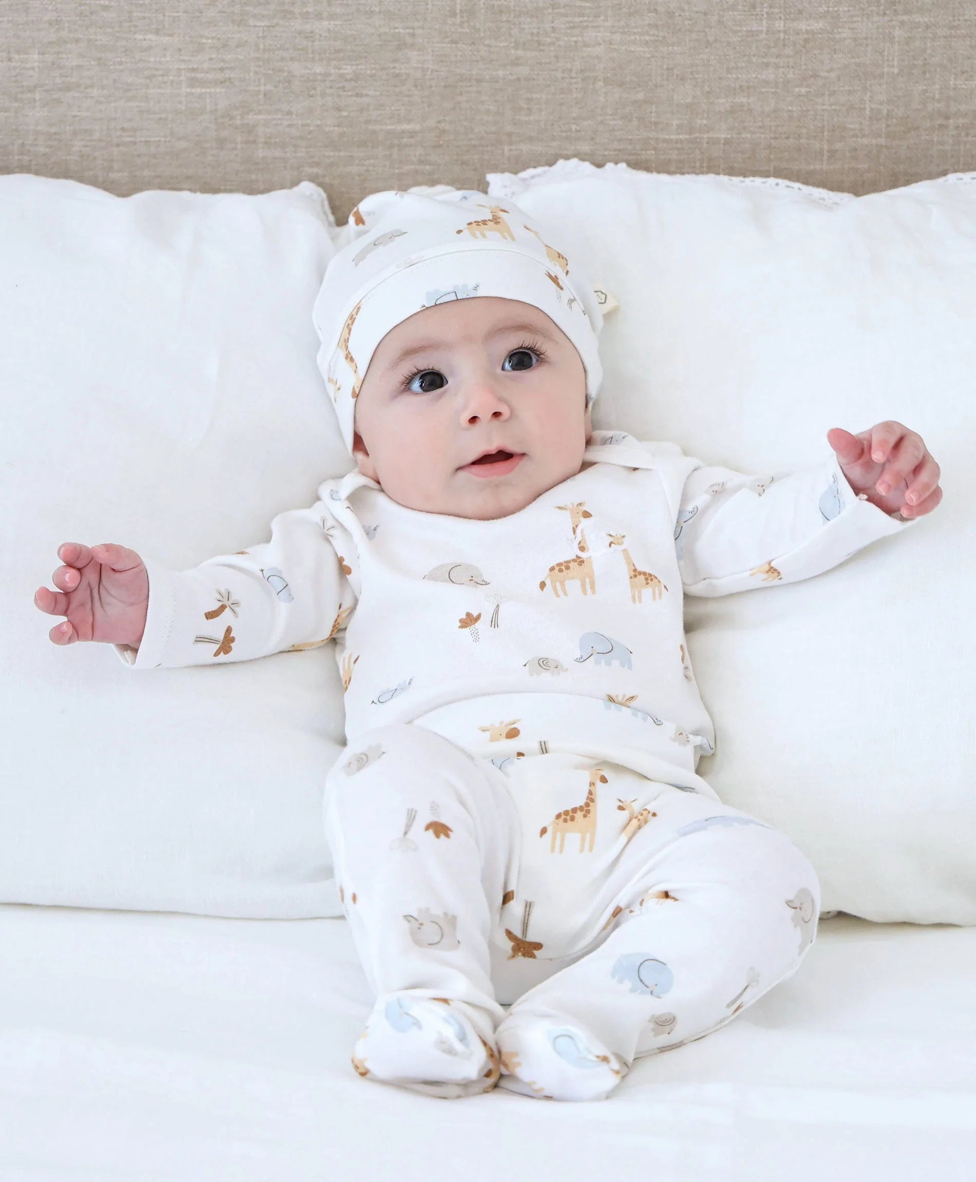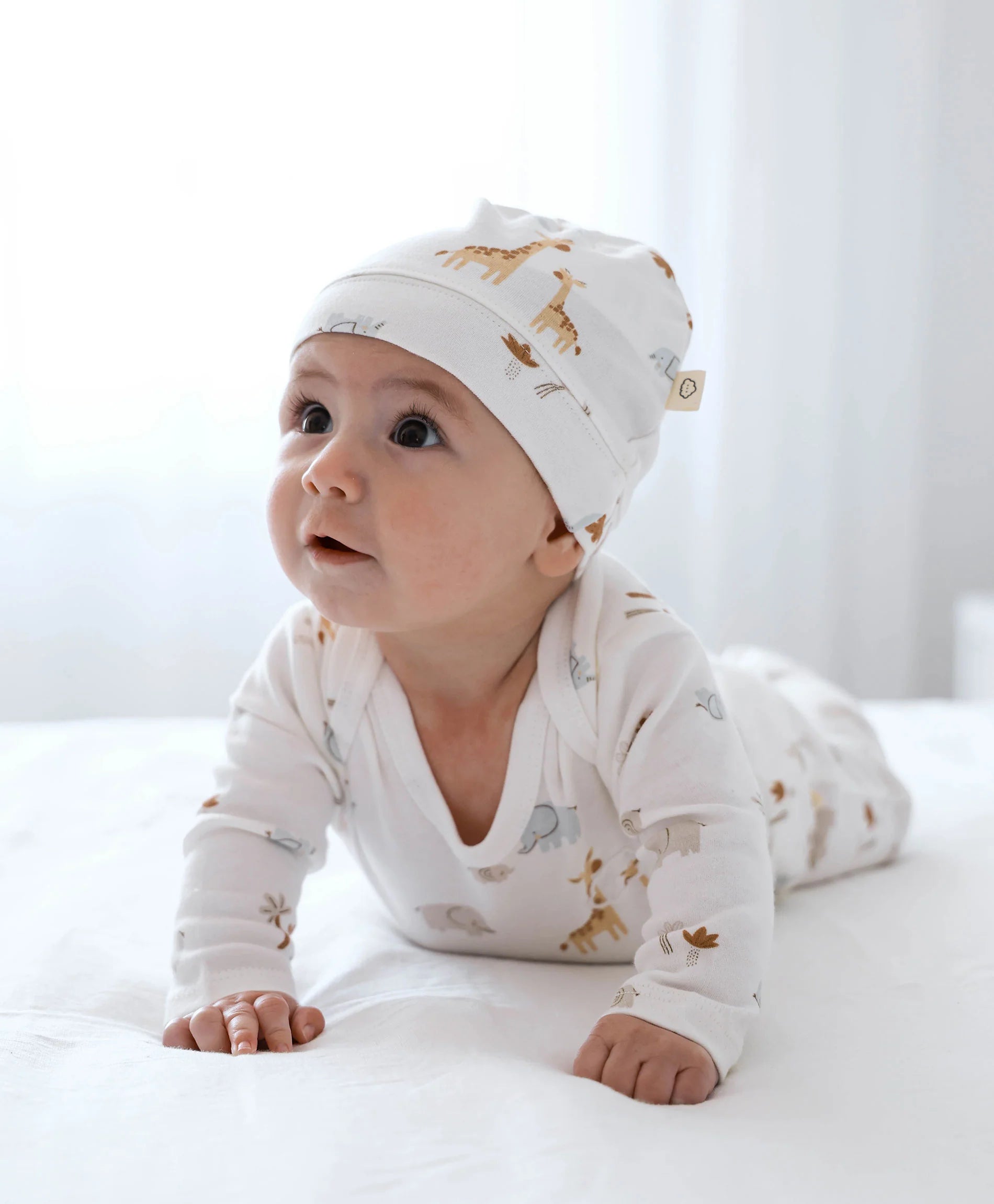 Everything you need bundled up in one pack for your newborn baby is right here, and it is also the perfect gift set! The 6-piece essentials set is designed to cover your needs for the little one's arrival, conveniently packed to take with you on the go. Made from GOTS certified 100% organic cotton, this 6-piece set includes: