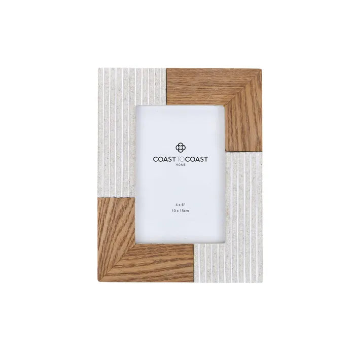 Elevate your home decor with the stylish Arlen Sandstone/Wood Frame. Made of durable sandstone and wood, this photo frame fits 4x6" or 17x22cm pictures. Display your cherished memories in a modern and elegant way. Upgrade your space with this timeless piece.