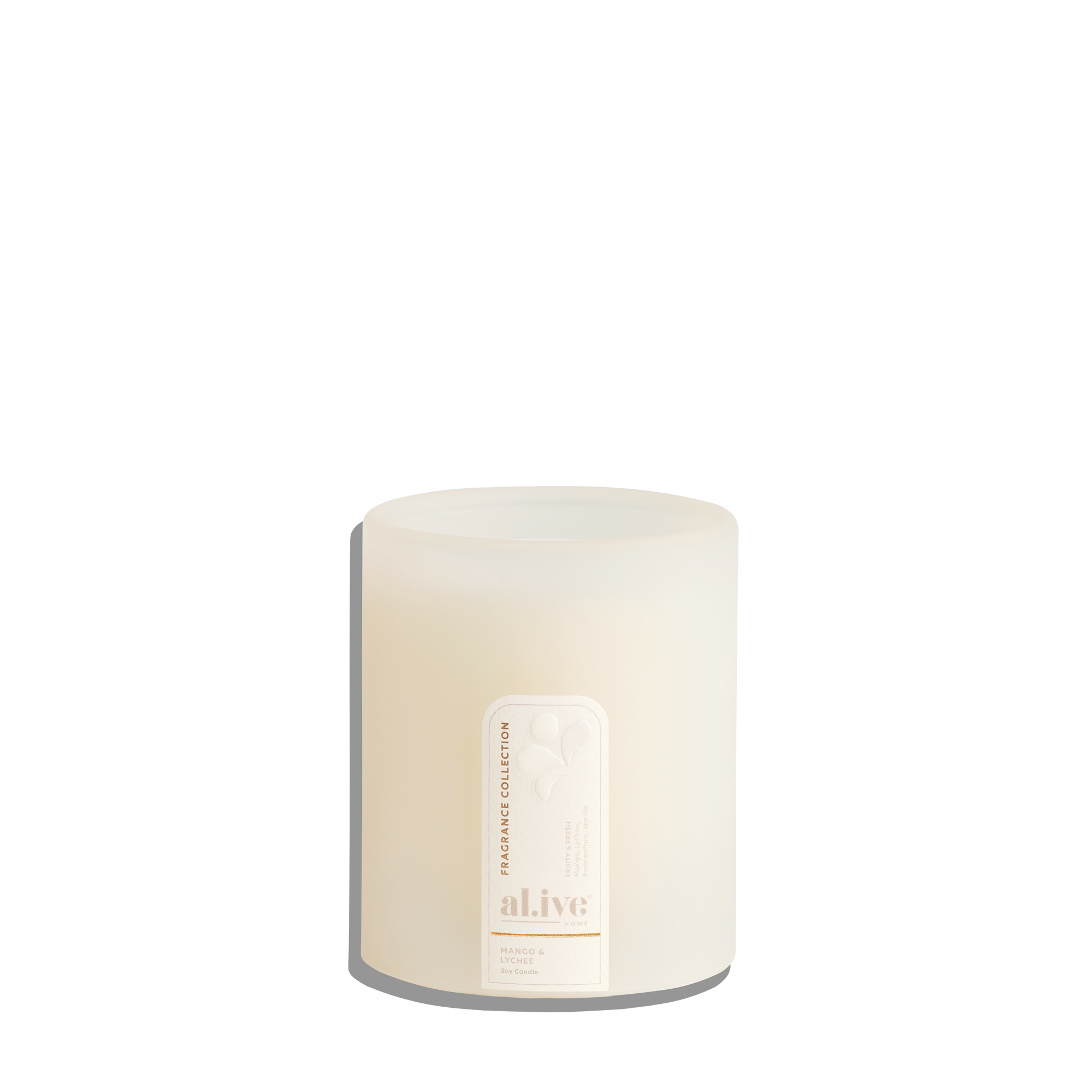 Natural soy & coconut wax blend. Lead-free cotton wick. Frosted glass vessel. FSC certified packaging, recyclable. Vessel reusable.