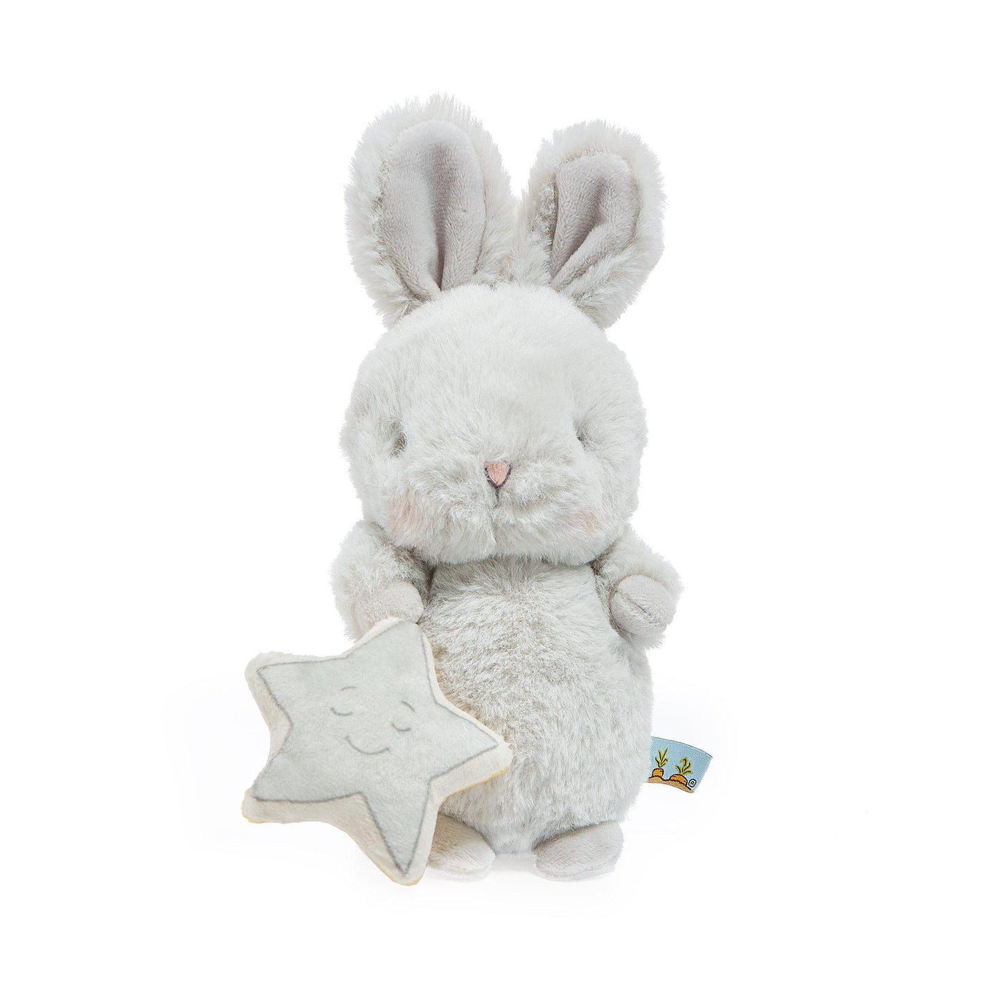 Sweet Bloom Bunny is ready for day or night, holding a bright yellow reversible sun and star accent toy, perfect for little hands to play and soothe with! Super soft grey nibble fur with velour features, and sweet embroidered details.