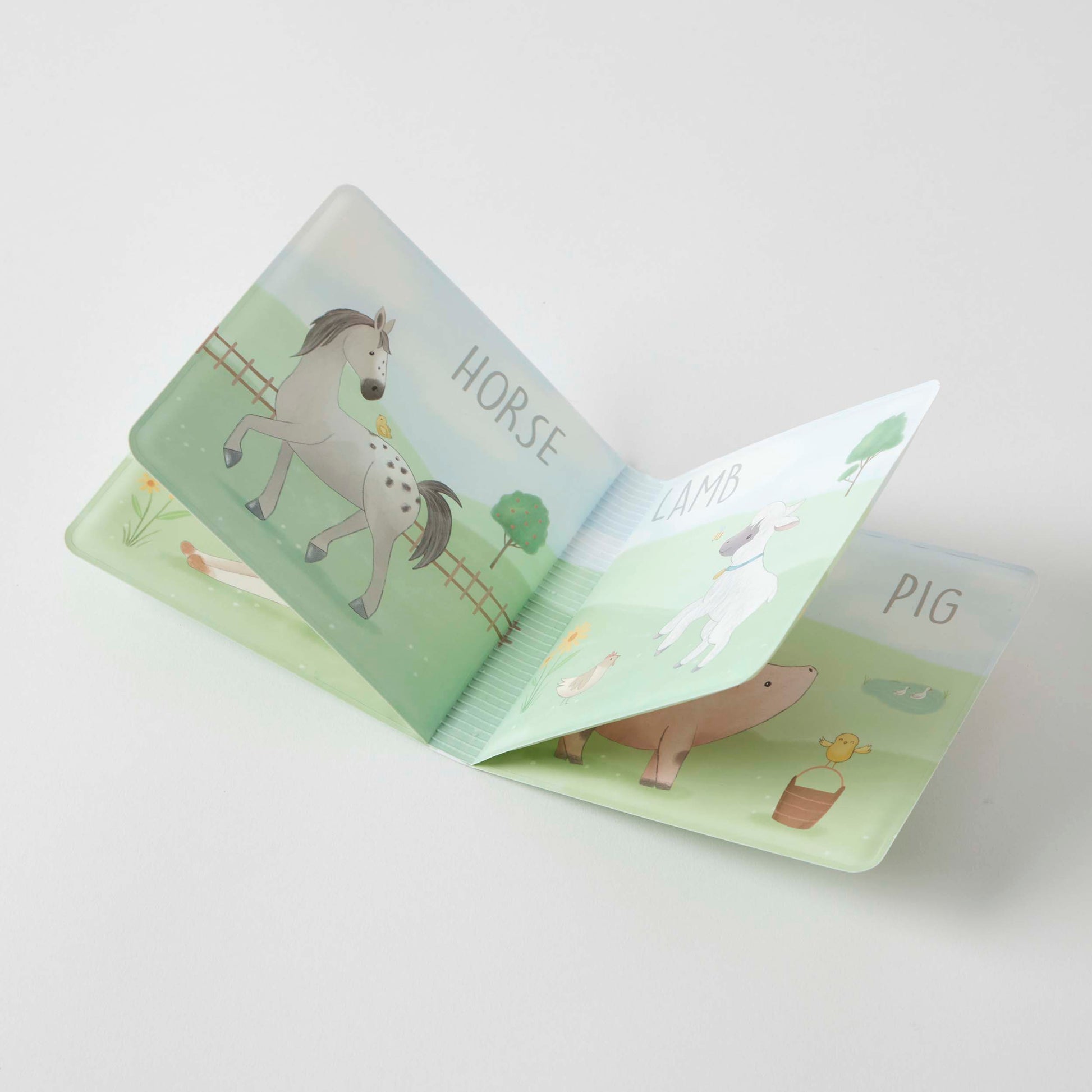 Spark the little one’s imagination during bath time with the Farm Fun Bath Book. Its lovely design and soft waterproof material make it the ideal bath toy. Each page in this bath book contains educational imagery—all with the help of adorable farm animals!