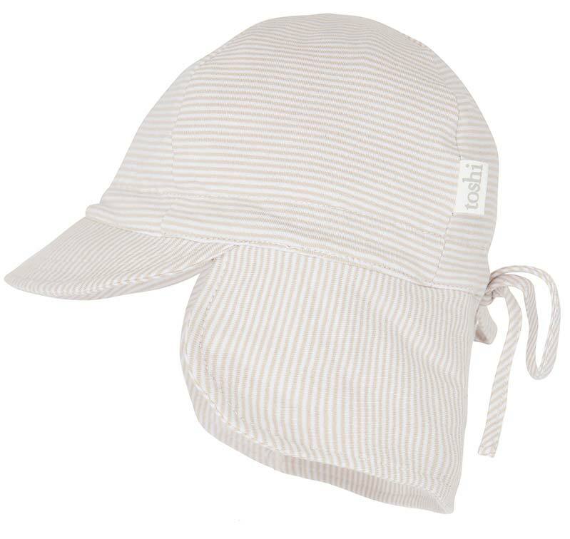 Flap Cap Baby Peanut features a tan stripe and is the ideal gender-neutral baby sunhat for fun in the sun.