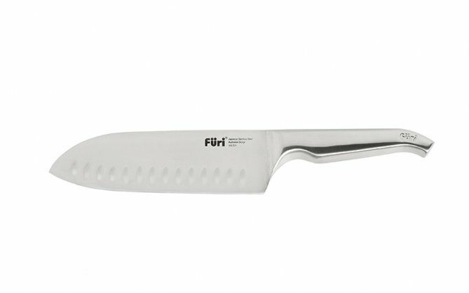 The Furi Pro Asian Utility is designed for performance, precision and comfort. Seen as an alternative to the western style paring knife. The wider blade allows for greater versatility to tackle medium sized chopping tasks and yet is still nimble like the paring knife. Scallops on the blade reduce friction and make cutting fast and easy.