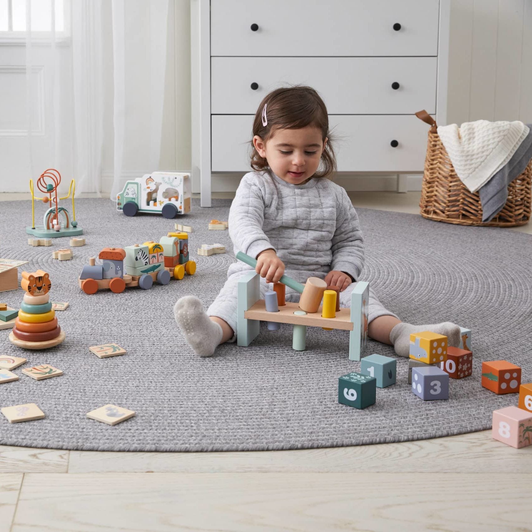 This wooden hammer bench is a great activity to encourage hand-eye coordination and imagination skills.