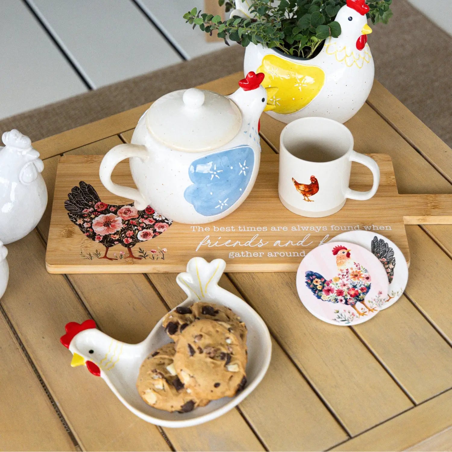 - Charming 3D hen-shaped mugs, planters, plates and egg cups!