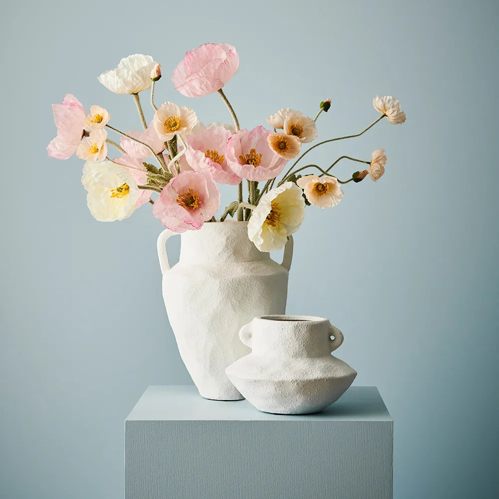 Bring a dash of colour to your interior space with this gorgeous faux poppy iceland spray in fuschia. Easily maintained this beautiful artificial flower stem will bring lasting beauty into your home or interior space. Create a one of a kind artificial arrangement mixing this poppy spray with other stems or place in a decorative vase on its own. For longer lasting faux flower stems keep out of direct sunlight.