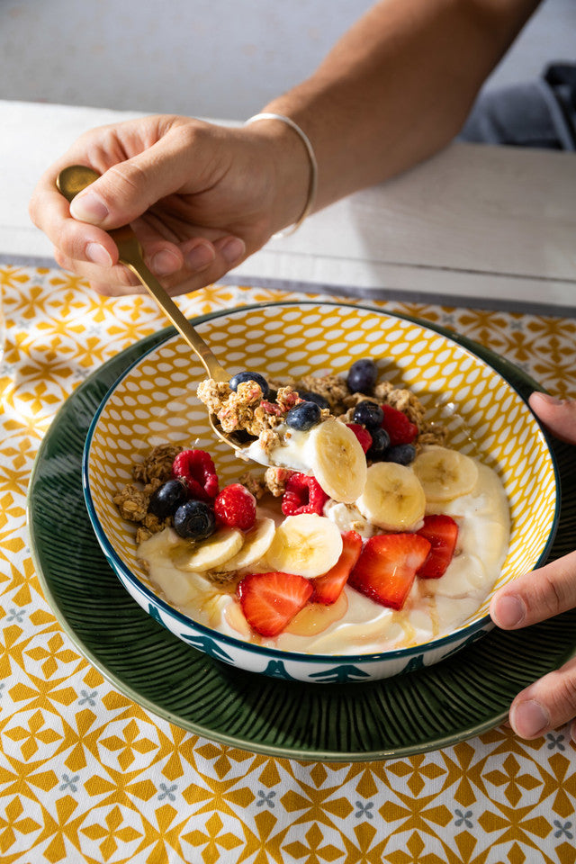 Vibrant stoneware bowls with a shallow design, this versatile bowl is perfect for serving pasta, stews, salads, stir-fries, and more. Add a touch of charm to your tablescape. Beautifully designed with eye-catching patterns, this bowl is perfect for everyday meals and special occasions. It is designed for convenience and is microwave and dishwasher-safe, making it easy to use and care for.