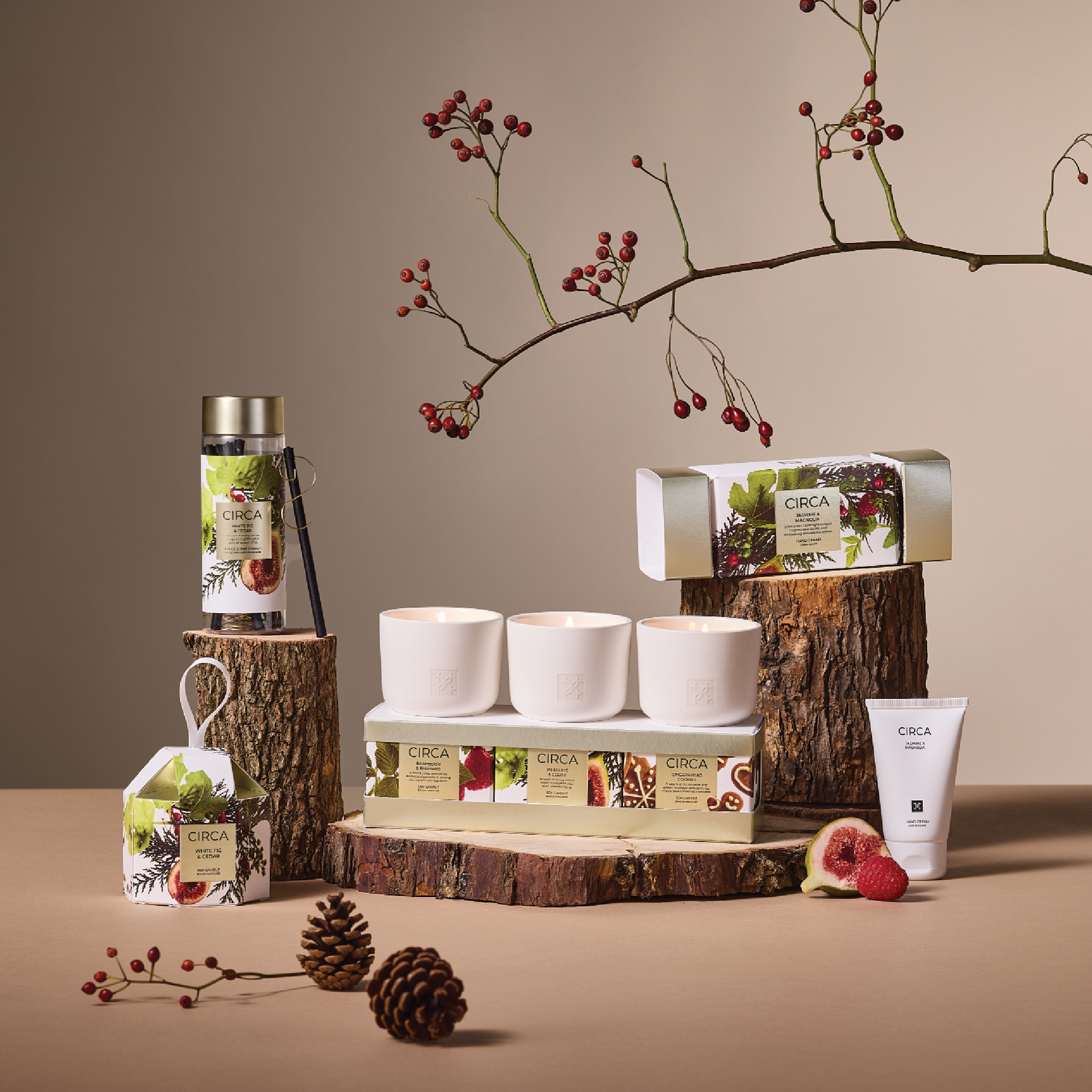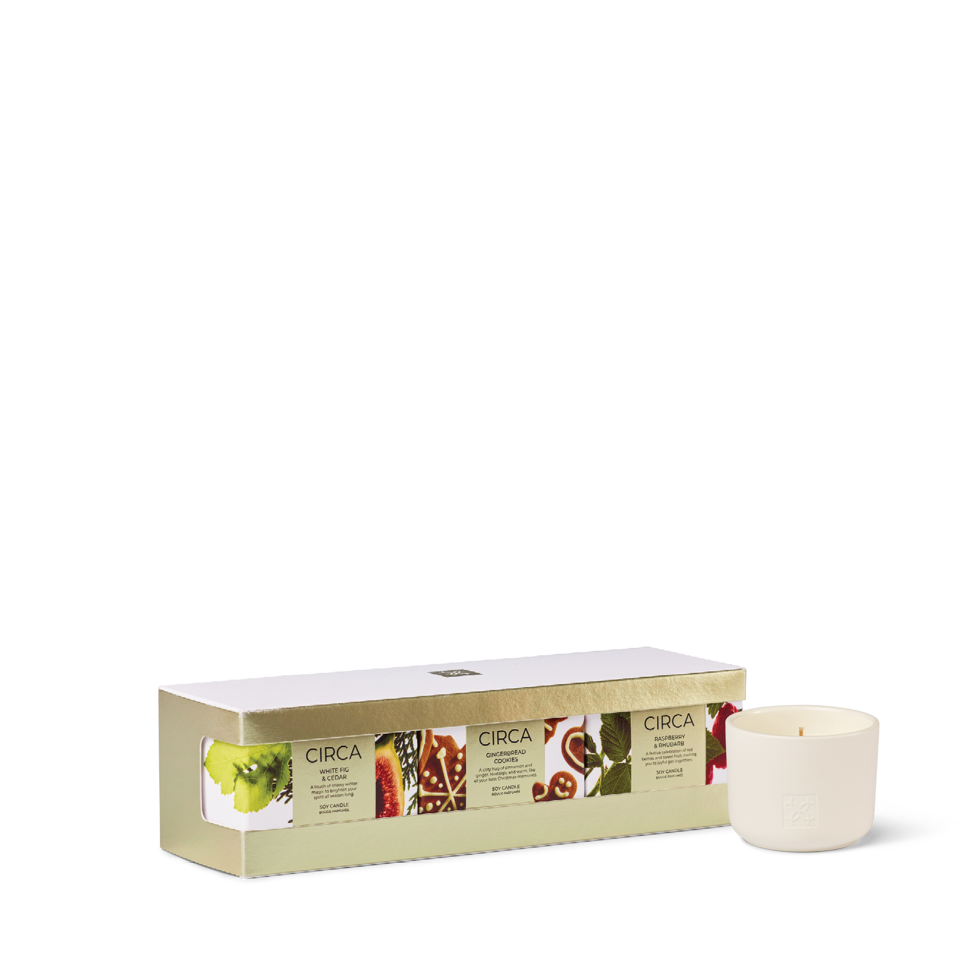 Be spoilt for choice this Christmas with three festive 60g Candles. Includes Raspberry & Rhubarb, White Fig & Cedar and Gingerbread Cookies. Gift as a set or individually as stocking fillers.