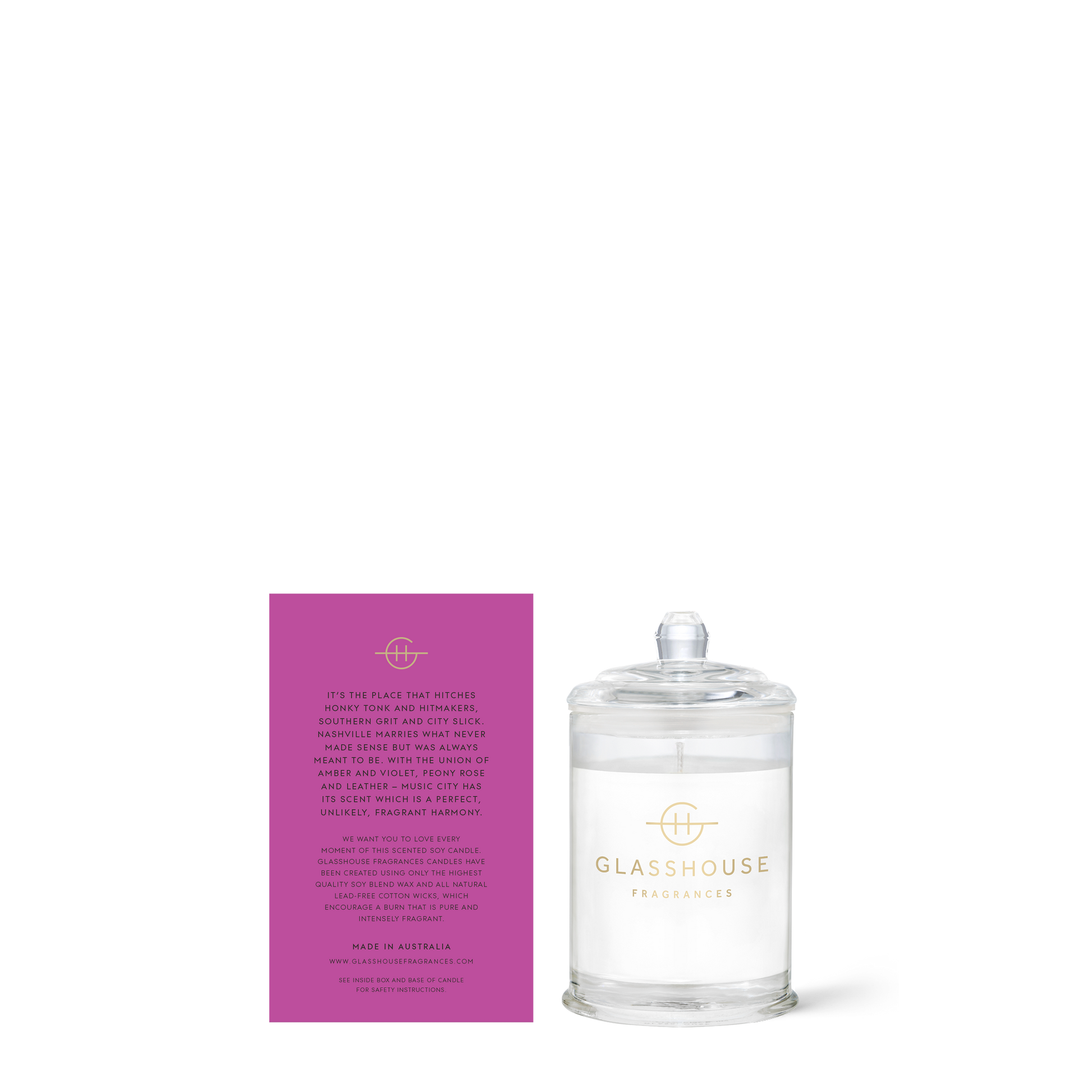 Our Music City candle honors the cultural vibrancy of Nashville, the beating heart of America’s country music scene. It weaves airy, powdery florals with musty Suede Leather as harmoniously as the music chords that drift from every bar.