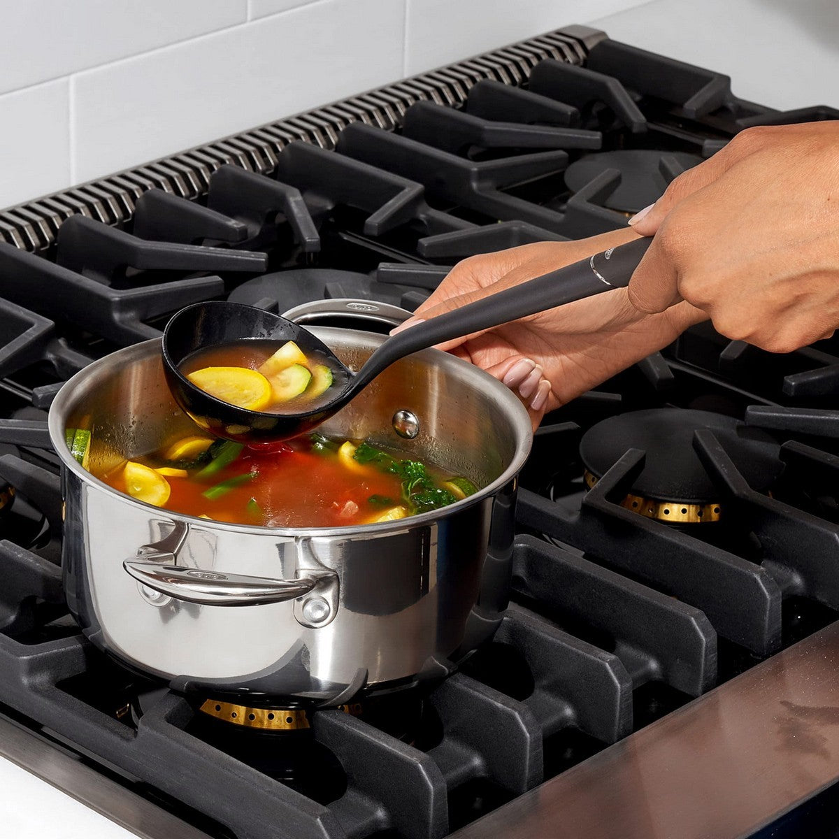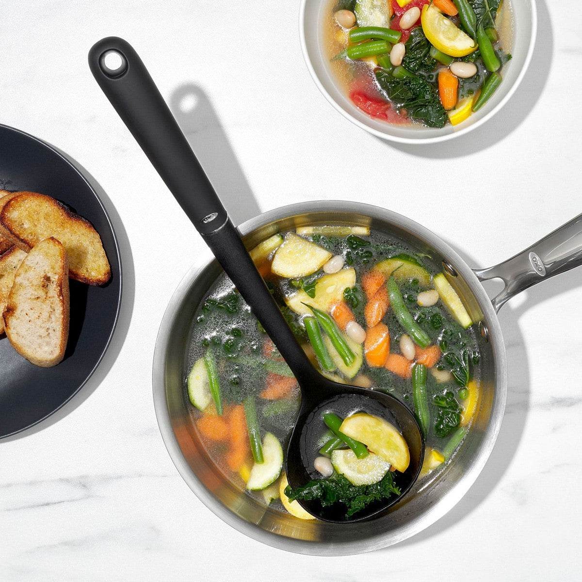 The Nylon Ladle is perfect for portioning and serving soups, stews, and chilis. Our nylon tools are a cut above, featuring oversized heads, extra-long, sturdy necks and comfortable grips. Heads are high heat-resistant and won't scratch non-stick cookware.