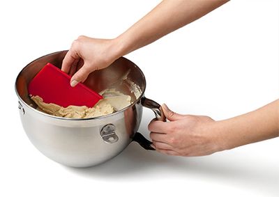 The bowl scraper works quickly to collect all ingredients inside the bowl, minimising wastage