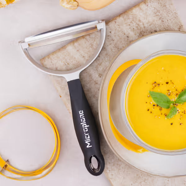 The Microplane Professional XL Peeler, the ultimate extra-wide vegetable peeler designed to make food prep faster, easier, and more efficient. This extra-wide peeler is perfect for tackling produce with thicker or tougher skins, such as butternut squash, sweet potatoes, melons, and papaya. Its innovative Y-shape design and larger blade provide exceptional precision, making it an excellent choice for peeling daikon, prepping cabbage for coleslaw, or even slicing onions with ease.