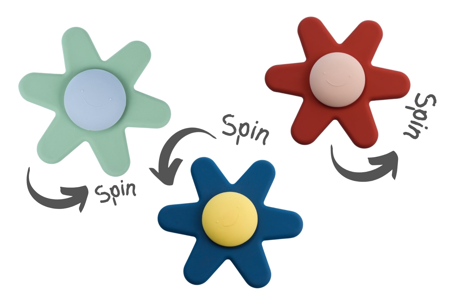 Introducing the Silicone Spinning Daisy from Koala Dream, a delightful sensory toy that will keep little hands entertained and engaged. This daisy features a suction back, allowing you to stick it onto any hard surface and spin the petals for endless fun.