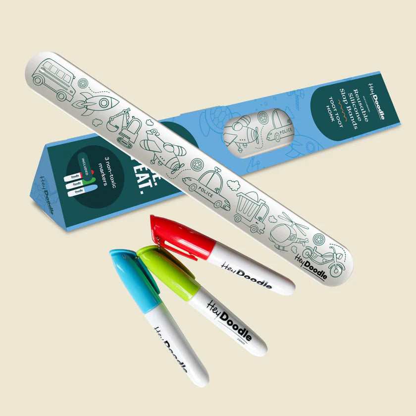 HeyDoodle’s Sketch-N-Slap bands are the ultimate reusable colouring fun, perfect as party favours, stocking stuffers or on-the-go creativity boosters!