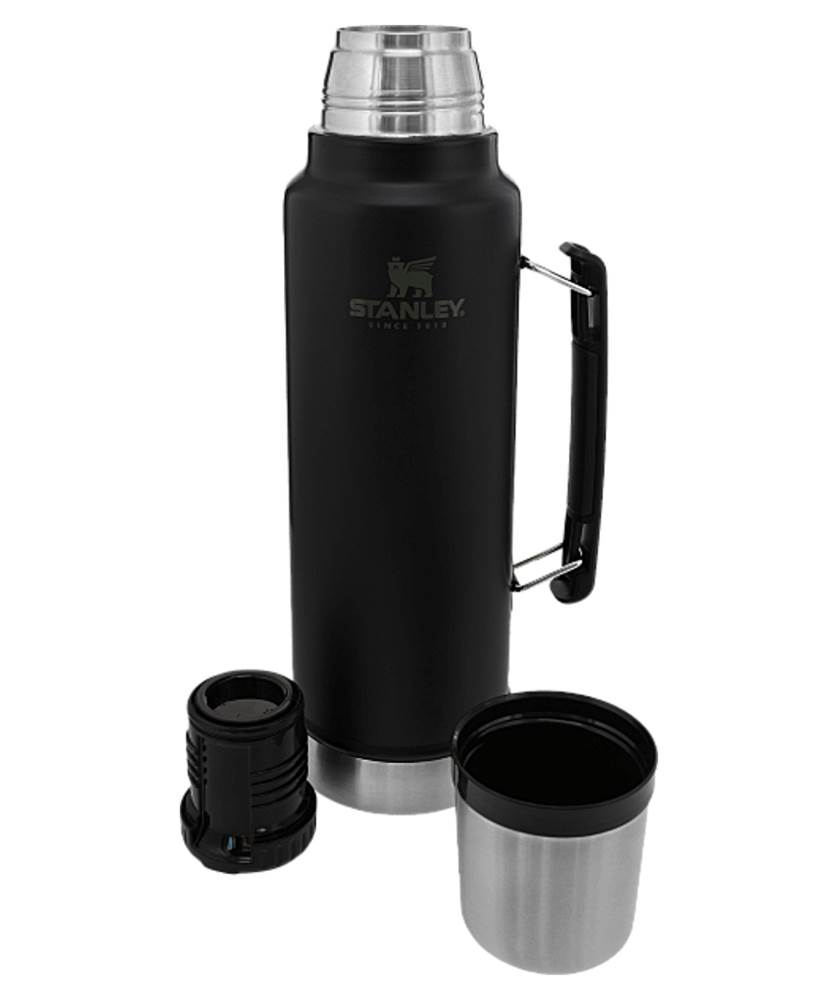 This Stanley Stainless Steel Outdoor Flask Keeps you beverages hot or cold for up to 24 hours. Features a double wall vacuum insulation, stainless steel construction, durable rustproof finish, heavy duty handle easy-pour stopper and an 8oz lid that doubles as drinking cup.