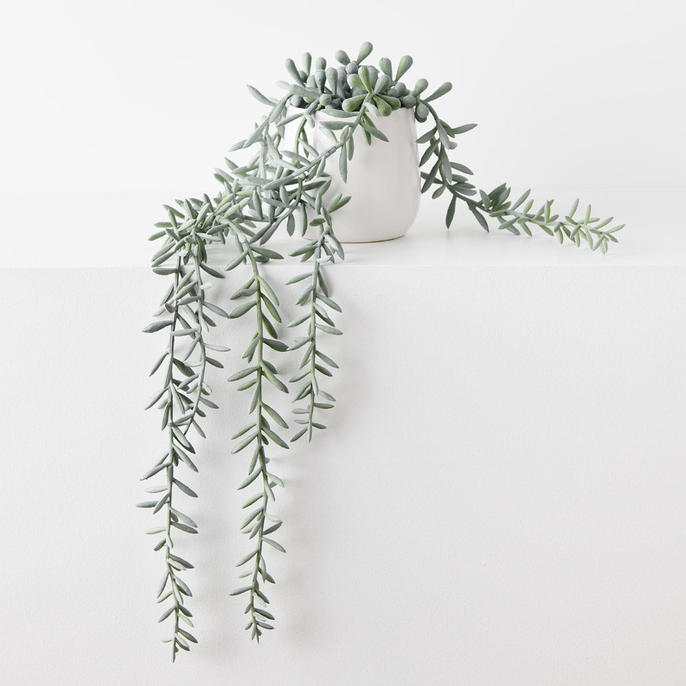 Introducing the artificial String of Bananas in Pot. A botanical masterpiece. Lifelike cascading vines spill effortlessly from the pot. This product comes nested in a pot.