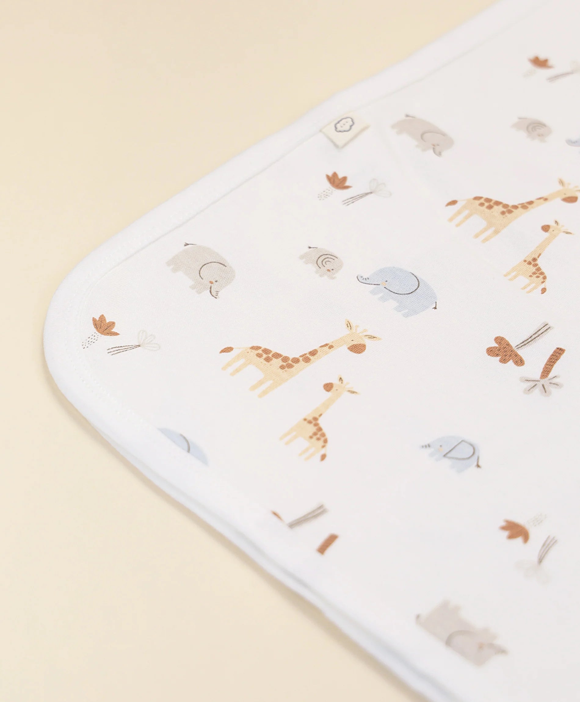 Featuring our adorable prints with bounded edges, this baby blanket is soft and ideal keeping the baby warm and swaddled in the cot, pram or car. Wrap your little one in this essential piece. Made from certified 100% organic cotton for your baby's delicate skin.