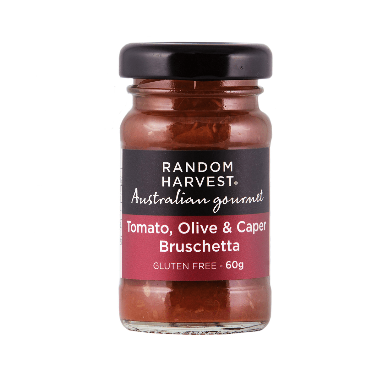 A delicious blend of full bodied diced tomatoes, black olives and capers are combined together to produce a piquant flavoured bruschetta for you to enjoy.