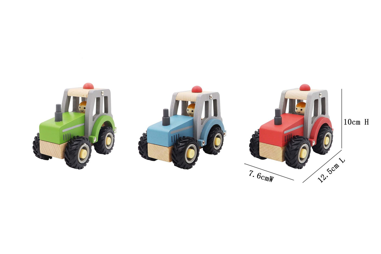 Assortment includes 3 different color tractors.