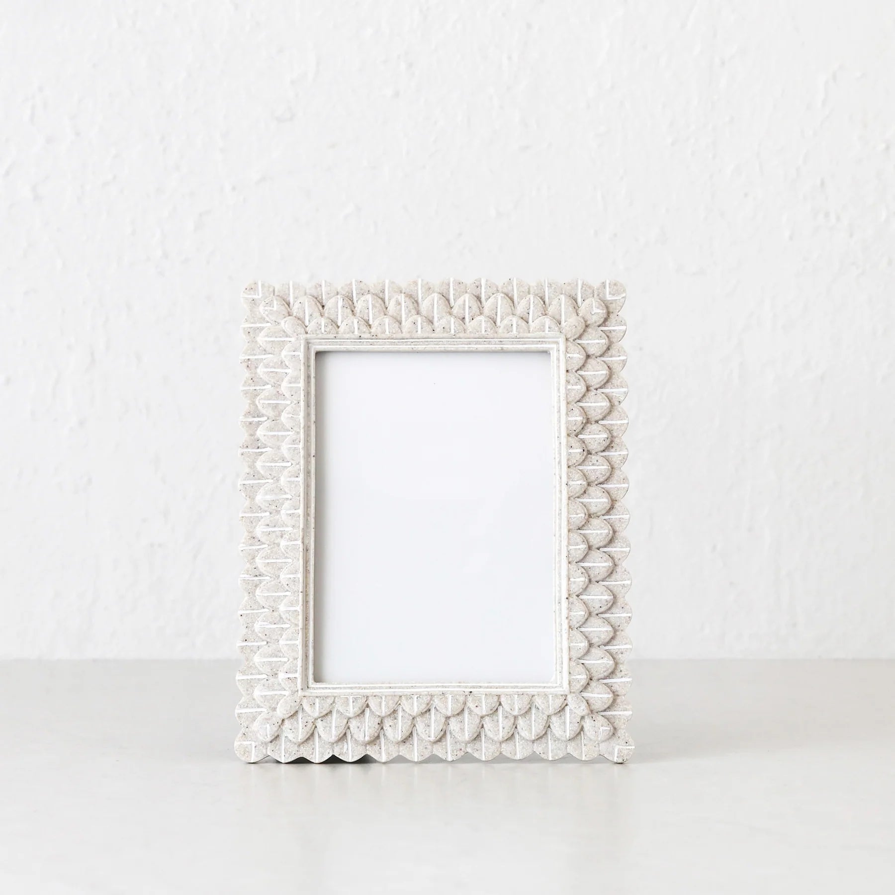 The Wategos Sandstone Photo Frame is a stunning way to showcase your favourite memories in either landscape or portrait. Crafted from natural sandstone and featuring stunning scalloped detail, this decorative picture frame adds warmth and texture to any space. The neutral tones and organic finish make it a perfect match for modern, rustic, coastal, and classic home interiors. Designed to hold standard-sized 5 x 7 inch photos, the Wategos frame is ideal for framing family pictures, wedding portraits, or travel snapshots. Whether placed on a hall table, shelf, bedside table, or desk, this stone photo frame brings a touch of nature indoors while keeping your cherished moments on display. Add timeless elegance to your home with the Wategos Sandstone Photo Frame.