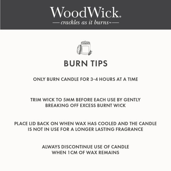 Fill your home with luxe scents and the gentle glow of a candle that crackles as it burns™. Featuring a natural wooden wick that emulates the soothing sound of a crackling fire, high quality soy wax blend to ensure a smooth and even burn and a premium fragrance, each WoodWick Candle is carefully crafted with passion by experienced candlemakers, dedicated to the art of luxury candles. The exclusive, patented wooden wick of our Pluswick® Innovation candles creates the sound of a crackling fire. Wicks are handcrafted for each individual candle and produce a generous wax pool with a fast fragrance release.
